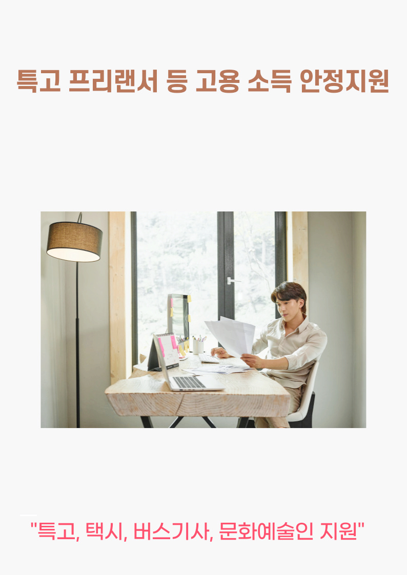 - 특수형태근로종사자, 법인택시/전세버스기사.문화예술인 등 고용소득안정지원금